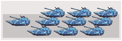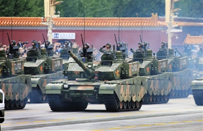 今年參加閱兵的坦克部隊來自北京軍區(qū)第38集團軍。在所有參閱的裝備方隊里,它們將第一個駛過天安門廣場。和其他方隊使用的矩形編隊不同,坦克方隊以箭形編隊前行。這次參閱的坦克為99A式坦克,是99式坦克的改進型,性能與99式坦克相比有本質性的提升。坦克方隊受閱長徑達112.6米,每行駛100米,駕駛員需要調整方向48次才能保證騎線,展現(xiàn)的可謂是“指尖上的舞蹈”。